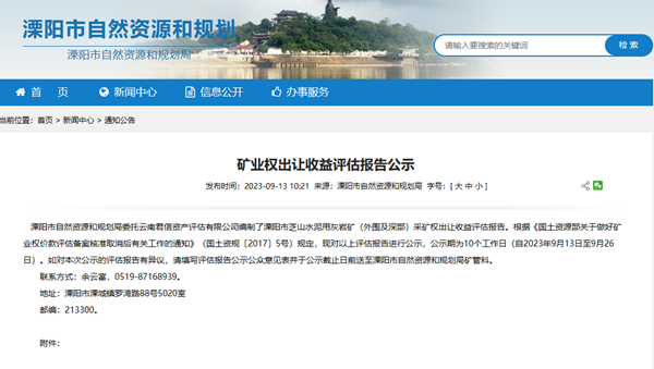 江蘇溧陽又有大礦要出!出讓評估收益超3億元