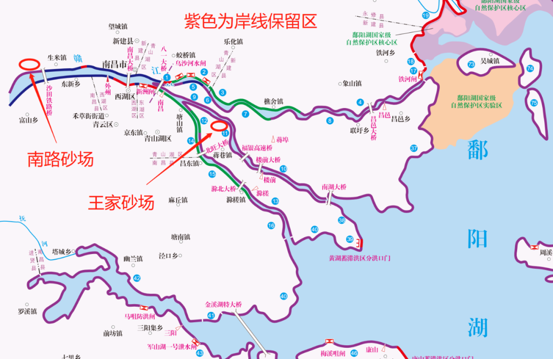 圖1 南路、王家砂場(chǎng)位于岸線保留區(qū)