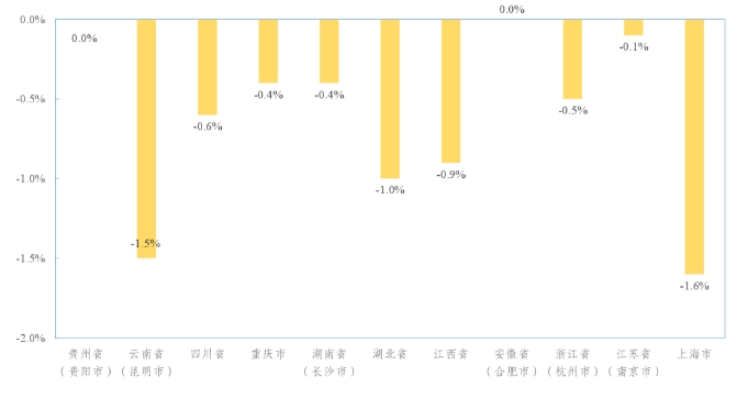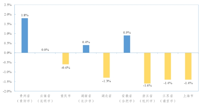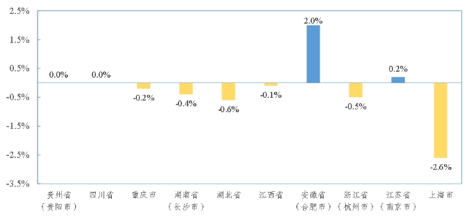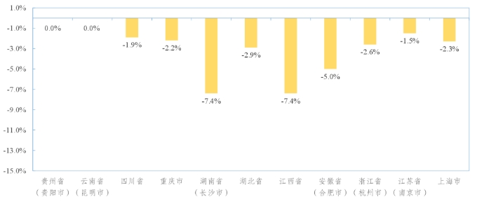 長江經(jīng)濟帶部分省(市)水泥價格環(huán)比增速