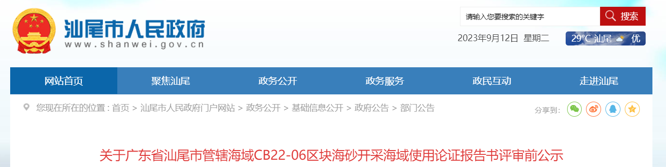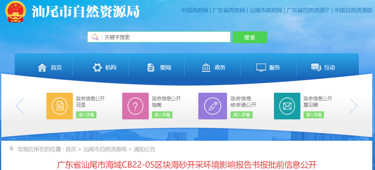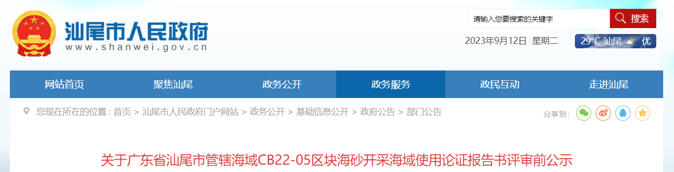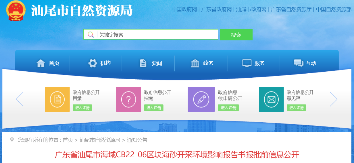 9月25日,汕尾自然資源局發(fā)布CB22-05、CB22-06兩個(gè)區(qū)塊海砂開采環(huán)境影響報(bào)告書報(bào)批前信息公開。根據(jù)文件內(nèi)容,兩個(gè)海砂開采區(qū)塊,經(jīng)過了兩階段“首次環(huán)境影響評(píng)價(jià)信息公開”及“征求意見稿公示”,公示期間,未收到公眾反饋信息。