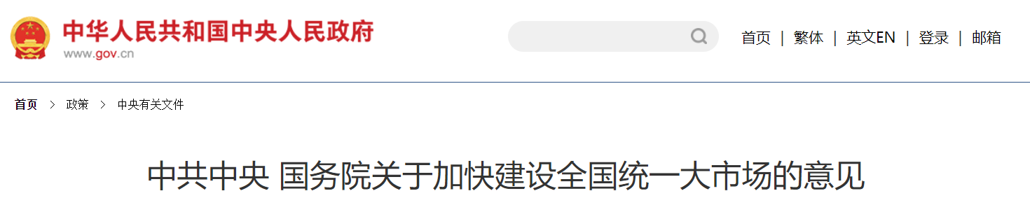 《中共中央國務(wù)院關(guān)于加快建設(shè)全國統(tǒng)一大市場的意見》第二十五條的規(guī)定: