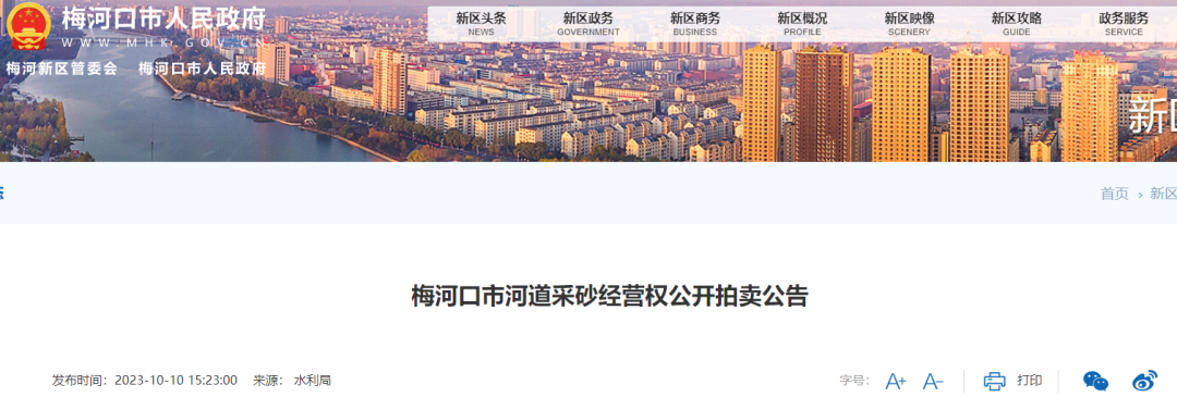 梅河口市河道采砂經(jīng)營權(quán)公開拍賣公告