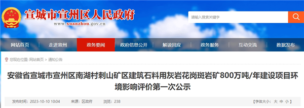 儲量超1.5億噸、800萬噸/年!安徽宣城國企骨料項目環(huán)評公示