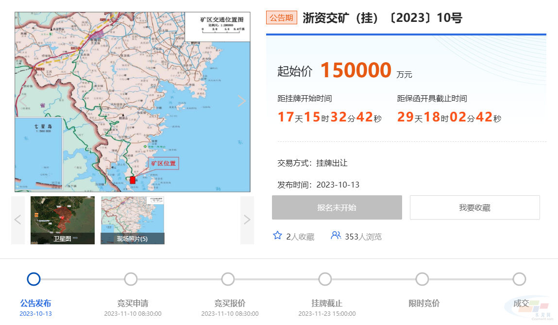 起始價(jià)15億 浙江溫州掛牌出讓一砂石礦采礦權(quán)
