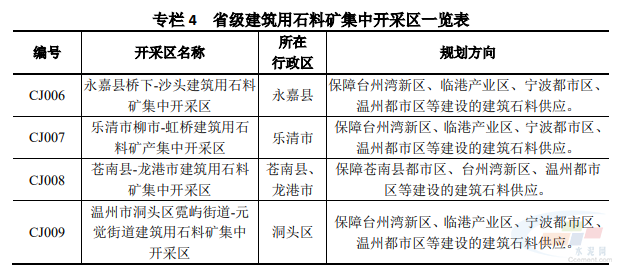 《浙江省溫州市礦產(chǎn)資源規(guī)劃(2021-2025年)》指出,要構(gòu)建樂清市大荊鎮(zhèn)-湖霧鎮(zhèn)等14處市級(jí)建筑用石料集中開采區(qū),新設(shè)建筑用石料采礦權(quán)原則上應(yīng)在集中開采區(qū)內(nèi),生產(chǎn)規(guī)模不應(yīng)低于準(zhǔn)入要求,綠色礦業(yè)建設(shè)水平領(lǐng)先全市。