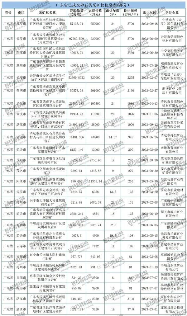 附:廣東已成交砂石類采礦權(quán)信息表(部分)