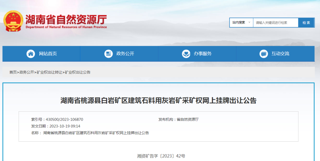 項(xiàng)目的出讓公告,即可瀏覽、查閱和下載《湖南省公共資源交易中心礦業(yè)權(quán)交易系統(tǒng)使用手冊(cè)》、相應(yīng)項(xiàng)目擬出讓的采礦權(quán)掛牌出讓文件等。