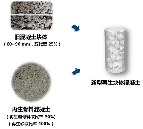 新型再生塊體混凝土 是由舊混凝土塊體和再生骨料混凝土按照一定比例組成的,再生骨料混凝土包含 再生粗骨料 和 工程渣土再生砂 。 這項技術 能夠大大提高舊混凝土和工程渣土等工程廢棄物的循環(huán)利用率,有效降低資源的消耗,助推城市綠色發(fā)展。