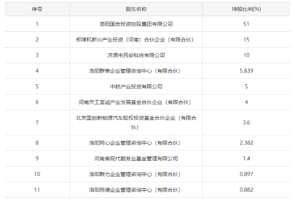 洛陽(yáng)LYC軸承有限公司為國(guó)有控股企業(yè),成立于2004年,共有11名股東,包括洛陽(yáng)國(guó)宏投資控股集團(tuán)、鄭煤機(jī)新興產(chǎn)業(yè)投資(河南)合伙企業(yè)(有限合伙)、中航產(chǎn)業(yè)投資有限公司等。
