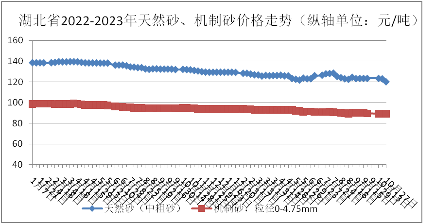 近日,湖北省價(jià)格監(jiān)測(cè)中心發(fā)布10月份湖北市場(chǎng)砂石價(jià)格,其中,天然砂(中粗砂)、機(jī)制砂全省均價(jià)分別為121.99元/噸、89.28元/噸,碎石(粒徑5-16mm)、碎石(粒徑17-31.5mm)全省均價(jià)分別為80.09元/噸、86.39元/噸, 砂石價(jià)格保持相對(duì)穩(wěn)定。