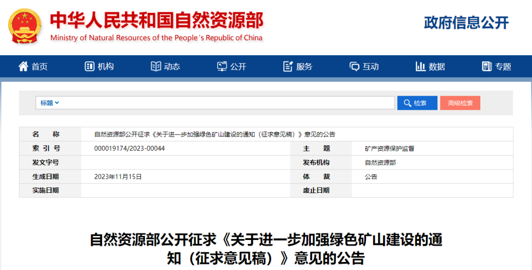 近日,自然資源部聯(lián)合生態(tài)環(huán)境部、財(cái)政部、市場(chǎng)監(jiān)管總局、金融監(jiān)管總局、中國(guó)證監(jiān)會(huì)起草了《關(guān)于進(jìn)一步加強(qiáng)綠色礦山建設(shè)的通知(征求意見(jiàn)稿)》,推動(dòng)礦業(yè)綠色低碳轉(zhuǎn)型發(fā)展,全面推進(jìn)綠色礦山建設(shè)。