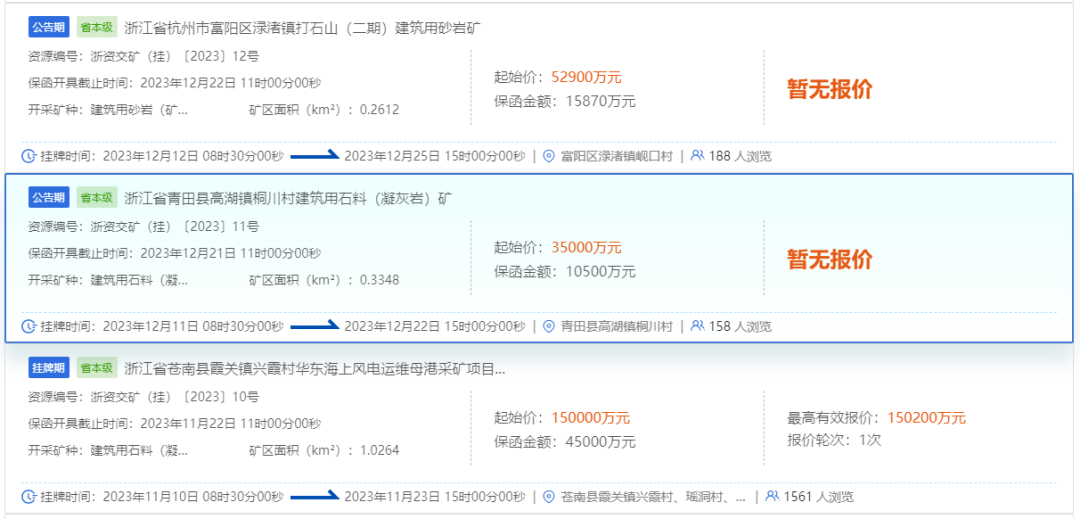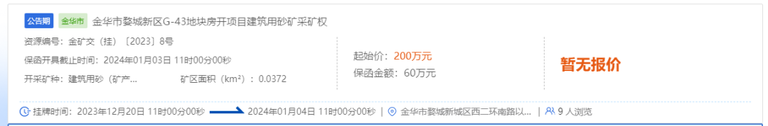 目前,除本文中提到的采礦權仍有四宗砂石礦正在掛牌中。