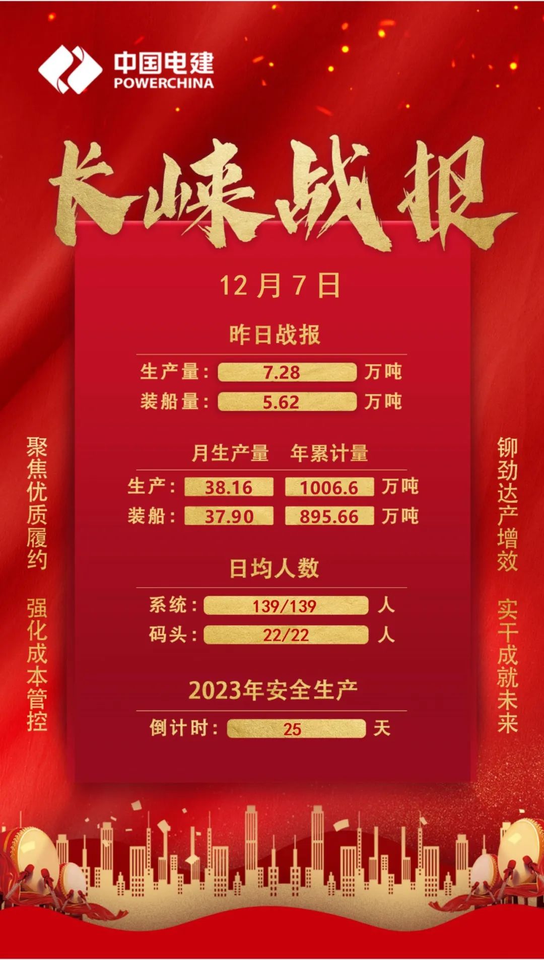 礦山和碼頭的各個(gè)角落。在8月9日“執(zhí)行實(shí)干、團(tuán)結(jié)奮戰(zhàn),全員保穩(wěn)產(chǎn)、全力保銷售”動(dòng)員大會(huì)上,長(zhǎng)崍公司及項(xiàng)目各生產(chǎn)運(yùn)行單位堅(jiān)決表態(tài),堅(jiān)定信念不動(dòng)搖,凝心聚力向前沖,堅(jiān)決打贏攻堅(jiān)戰(zhàn),為工程局高質(zhì)量發(fā)展貢獻(xiàn)長(zhǎng)崍力量!承擔(dān)粗碎重任的一工區(qū)不斷深挖設(shè)備潛力,精心維護(hù)、保養(yǎng)設(shè)備,使設(shè)備始終處于最佳狀態(tài)。11月初以來(lái),日均產(chǎn)量穩(wěn)定在6.5萬(wàn)噸左右,11月30日創(chuàng)造日產(chǎn)量7.65萬(wàn)噸紀(jì)錄。