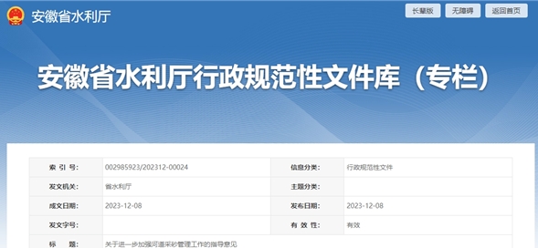 近日,安徽省水利廳印發(fā)了《關于進一步加強河道采砂管理工作的指導意見》(簡稱《指導意見》)。