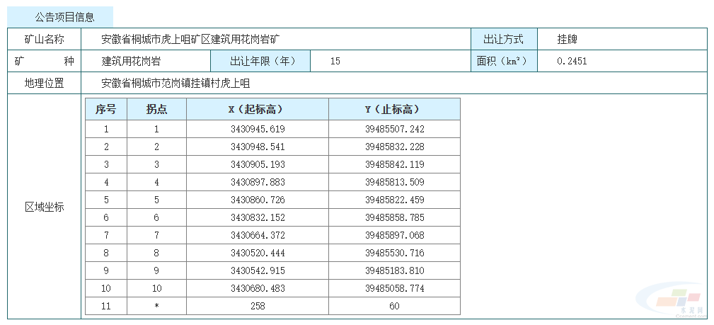 12月5日,桐城市公共資源交易中心與桐城市自然資源和規(guī)劃局聯(lián)合發(fā)布公告,掛牌出讓安徽省桐城市虎上咀礦區(qū)建筑用花崗巖礦采礦權(quán),擬出讓15年,起始價(jià)2.16億元。