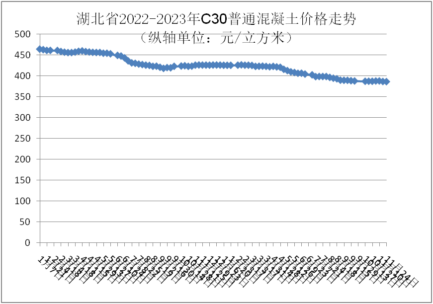 監(jiān)測數(shù)據(jù)顯示:11月份,強度等級C30普通混凝土全省均價為386.79元/立方米,環(huán)比與上月基本持平,同比下跌8.97%。