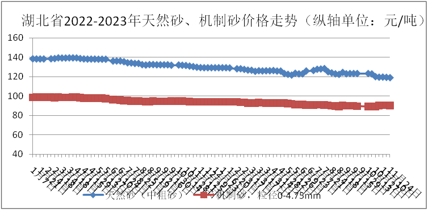 天然砂(中粗砂)、機制砂全省均價分別為119.34元/噸、90.39元/噸。