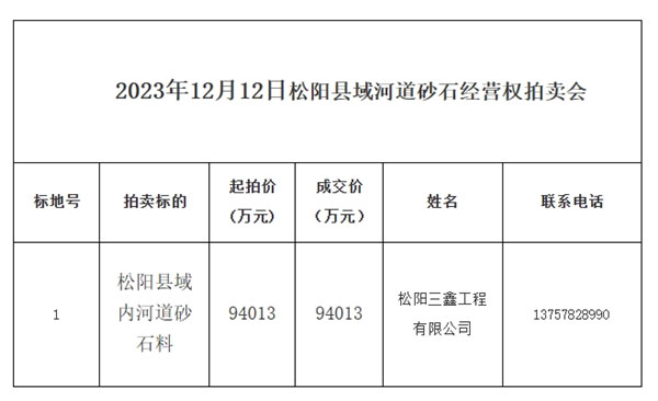 日前,浙江省麗水市松陽縣公共資源交易中心發(fā)布消息稱,縣域內(nèi)4000萬噸河砂20年經(jīng)營權(quán)被松陽三鑫工程有限公司(松陽縣交通發(fā)展投資集團有限公司的全資子公司)以94013萬元(底價)競得,資源噸成本約為23.5元。
