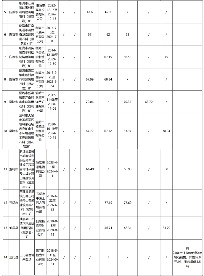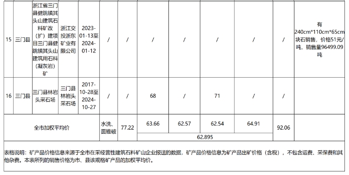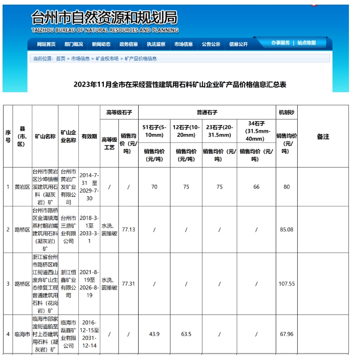 出廠價(jià)107元/噸!浙江該地16家砂石礦山產(chǎn)品價(jià)格公布!