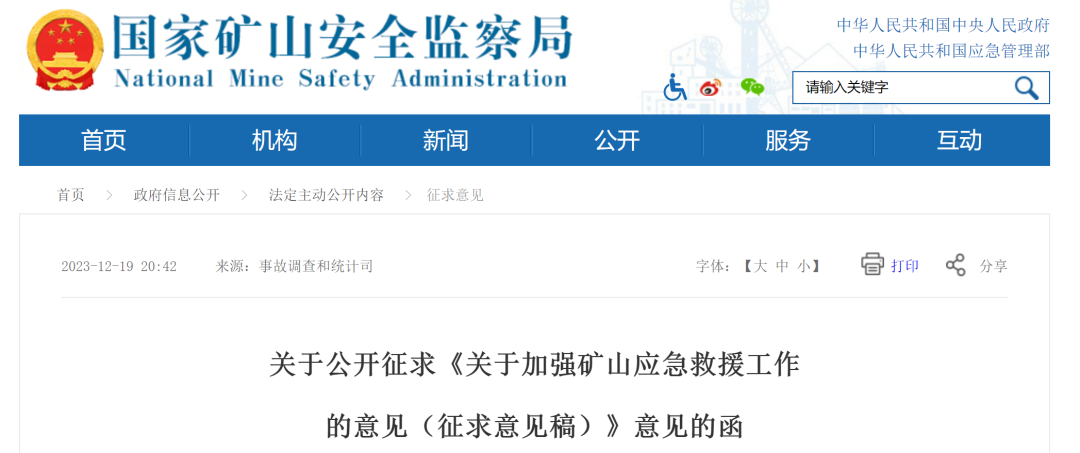 關(guān)于公開征求《關(guān)于加強(qiáng)礦山應(yīng)急救援工作的意見(征求意見稿)》意見的函