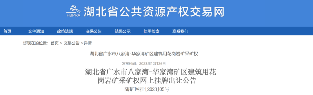 項(xiàng)目名稱:湖北省廣水市八家灣-華家灣礦區(qū)建筑用花崗巖礦采礦權(quán)