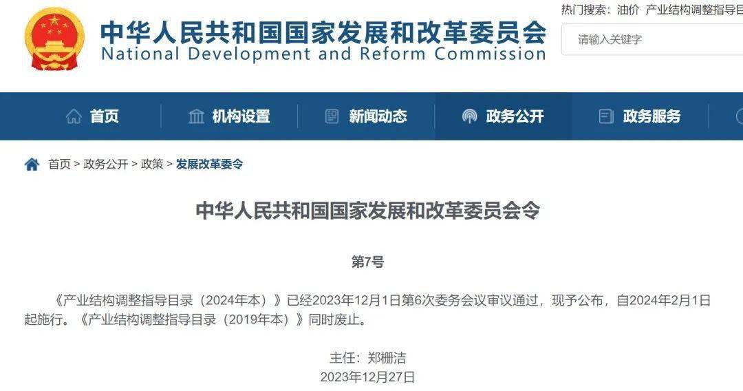 2023年12月29日,國家發(fā)展改革委修訂發(fā)布了《產(chǎn)業(yè)結(jié)構(gòu)調(diào)整指導(dǎo)目錄(2024年本)》(以下簡稱《目錄(2024年本)》)。自2024年2月1日起正式施行。國家發(fā)展改革委有關(guān)負(fù)責(zé)人介紹,《目錄(2024年本)》共有條目1005條,其中鼓勵(lì)類352條、限制類231條、淘汰類422條。本次發(fā)布的《目錄(2024年本)》政策導(dǎo)向是,推動制造業(yè)高端化、智能化、綠色化,鞏固優(yōu)勢產(chǎn)業(yè)領(lǐng)先地位,在關(guān)系安全發(fā)展的領(lǐng)域加快補(bǔ)齊短板,構(gòu)建優(yōu)質(zhì)高效的服務(wù)業(yè)新體系。