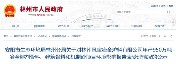 近日,河南省安陽市林州鳳寶冶金爐料有限公司年產(chǎn)950萬噸冶金熔劑骨料、建筑骨料和機(jī)制砂項(xiàng)目環(huán)評(píng)受理。該項(xiàng)目總投資超9.4億元(94111.4萬元),礦山設(shè)計(jì)生產(chǎn)服務(wù)年限22.8年,施工工期12個(gè)月。生產(chǎn)規(guī)模950萬噸/年,其中建筑用石料礦750萬噸/年,熔劑用白云巖礦200萬噸/年。