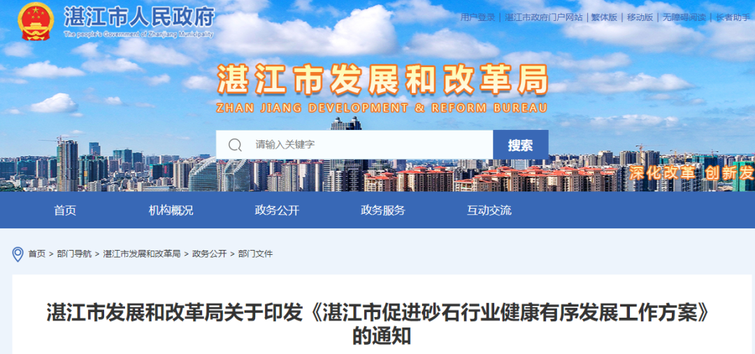 湛江市發(fā)展和改革局關于印發(fā)《湛江市促進砂石行業(yè)健康有序發(fā)展工作方案》的通知