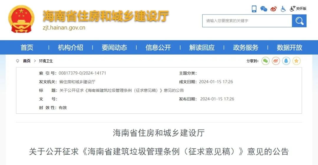 為加強建筑垃圾管理和利用,維護良好生態(tài)環(huán)境,近日,海南省住房和城鄉(xiāng)建設廳公布《海南省建筑垃圾管理條例(征求意見稿)》(以下簡稱意見稿),向社會各界征求意見。在2月15日前,各界人士可通過信函或電子郵件形式向省住建廳提出意見和建議。