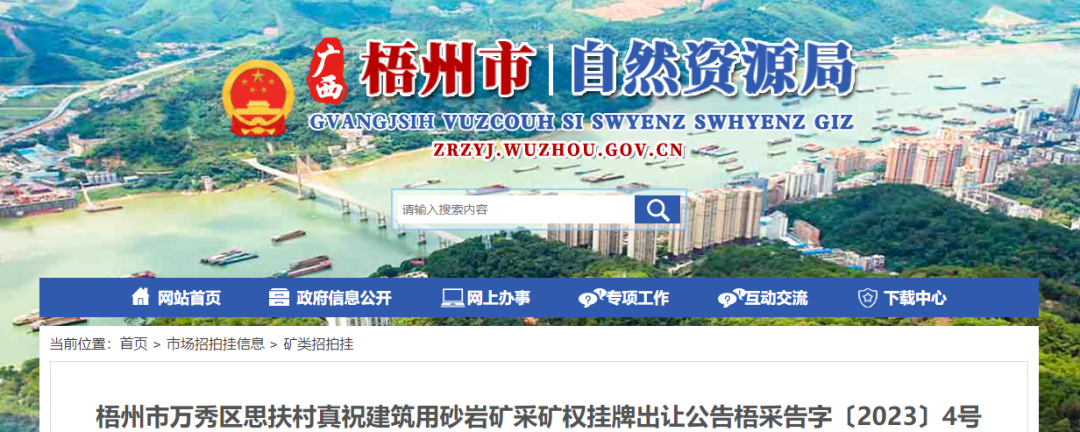 近日,廣西梧州市萬秀區(qū)思扶村真祝建筑用砂巖礦采礦權(quán)成功出讓。該礦資源(控制+推斷)4399.16萬立方米(12009.71萬噸),可利用資源量3599.01萬立方米(9825.30萬噸),礦山設(shè)計露天開采建筑用砂巖600萬噸/年,綜合利用回填骨料(中風化層+夾石)251.03萬噸/年,擬出讓年限17年(含基建期),成交價約2.8億元(28010萬元),競得人梧州市安盛綠色建筑材料有限公司是當?shù)貒蟮娜Y子公司。