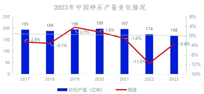 《報(bào)告》顯示,2023年,全國(guó)砂石產(chǎn)量168.35億噸,較去年下降3.35%。我國(guó)砂石行業(yè)之所以產(chǎn)量總體下降,關(guān)鍵在于需求端與供應(yīng)端的嚴(yán)重失衡。在供給端方面,隨著國(guó)家多部門政策文件陸續(xù)發(fā)布,近年來國(guó)內(nèi)投資