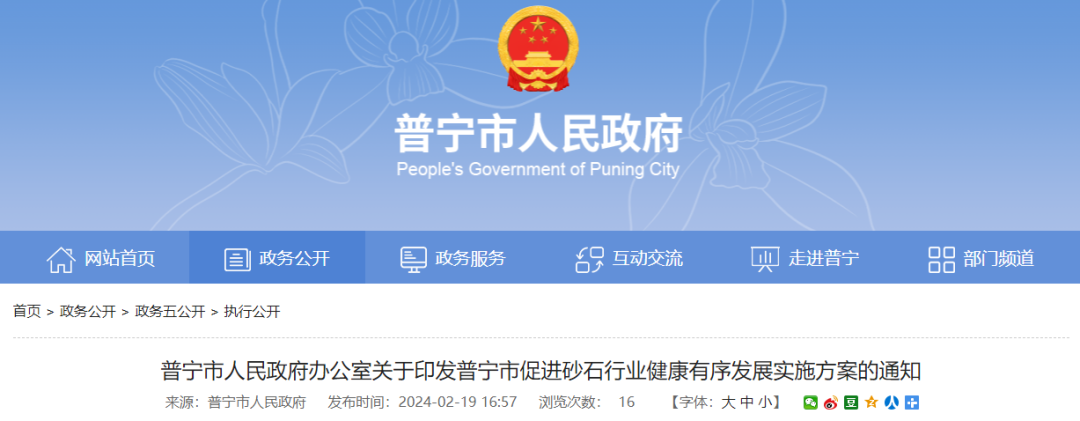 近日,廣東普寧市人民政府發(fā)布《普寧市促進(jìn)砂石行業(yè)健康有序發(fā)展實(shí)施方案》(以下簡(jiǎn)稱《方案》)。《方案》提出: