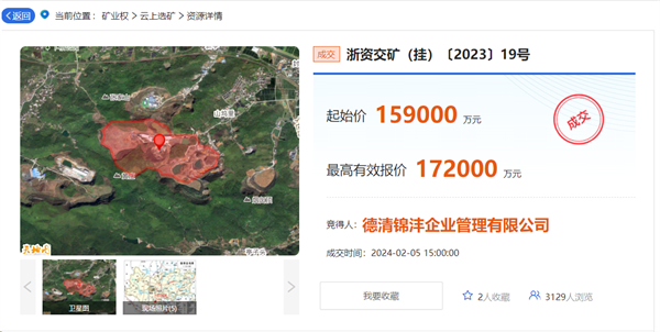 2月5日,浙江一建筑用石料礦成功出讓。該項目資源儲量超1.2億噸,年生產(chǎn)規(guī)模900萬噸,出讓13年9個月。德清錦灃企業(yè)管理有限公司以17.2億元(172000萬元)成功競得,政策處置費約13億元,經(jīng)計算,該礦噸成本超25元。