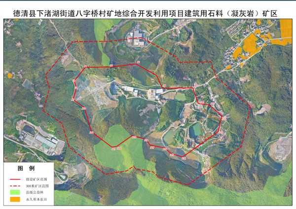浙江省德清縣下渚湖街道八字橋村沈曹礦區(qū)建筑用石料(凝灰?guī)r)礦礦區(qū)面積約1.1826平方千米。礦區(qū)范圍內(nèi)共計出讓資源量12257.78萬噸,其中建筑用石料(凝灰?guī)r)控制資源量12171.69萬噸、宕碴控制資源量86.09萬噸,剝離量490.22萬立方米。本采礦權(quán)到期后可申請延續(xù),延續(xù)最長時間不超過6年。