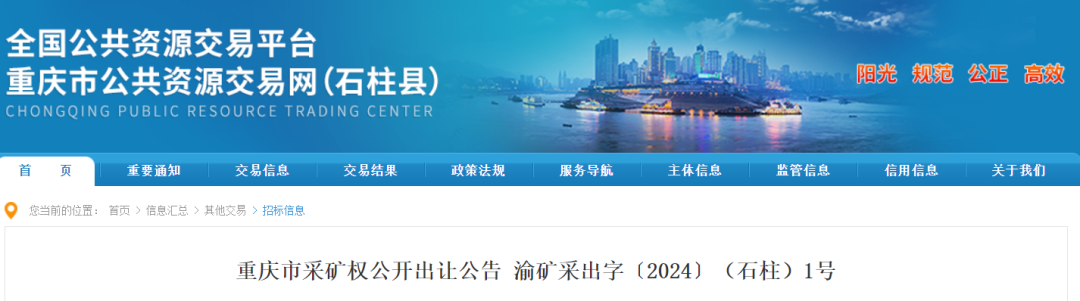 近日,重慶市石柱土家族自治縣規(guī)劃和自然資源局掛牌出讓石柱縣王家鄉(xiāng)山泉村石樁坪建筑石料用灰?guī)r礦。該礦資源儲(chǔ)量32922.6萬噸;年產(chǎn)能950萬噸;出讓年限25.9年;出讓起始價(jià)7.36億元。