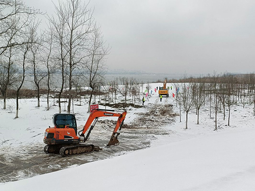 位于長江邊的武漢港江夏港區(qū)金水作業(yè)區(qū)工地,一片銀裝素裹,挖掘機手臂旋轉、熱潮涌動。2月24日,湖北港口集團江夏區(qū)永久砂石集散中心(武漢港江夏港區(qū)金水作業(yè)區(qū)一期碼頭工程)開工。