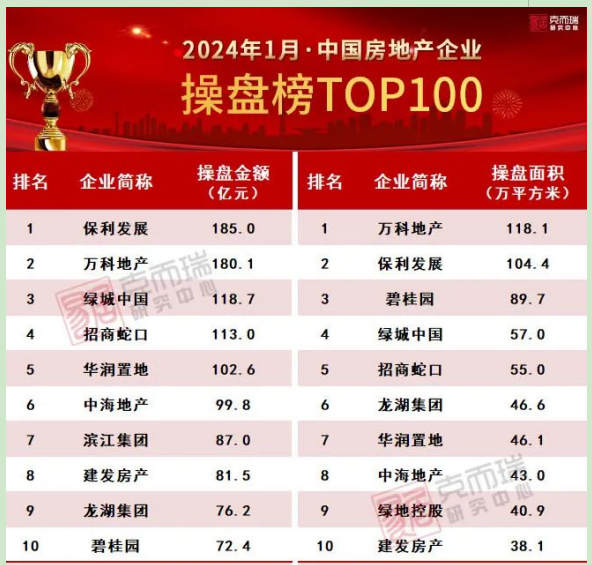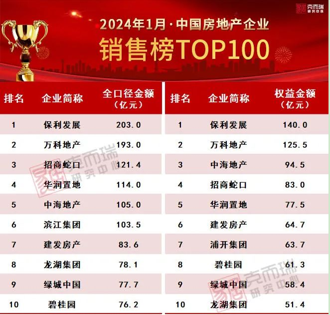 盡管2024年第一個(gè)月需求端迎來(lái)近期最為寬松的環(huán)境,但銷(xiāo)售下滑未能止步。TOP10房企合計(jì)銷(xiāo)售額接近1200億元,與2023年1月的1779億元相比下降33%。