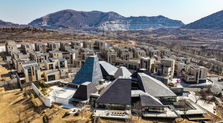 這是3月9日拍攝的位于天津市薊州區(qū)的東后子峪礦區(qū)舊址,目前已經(jīng)過修復(fù)并建成了“eden春山里”生態(tài)教育國際生活示范區(qū)(無人機照片)。新華社記者 孫凡越 攝