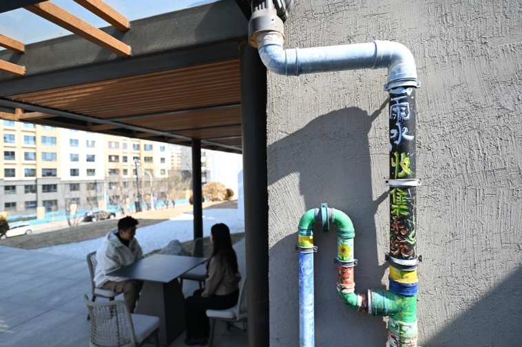 這是3月9日在“eden春山里”生態(tài)教育國際生活示范區(qū)建筑外拍攝的雨水收集裝置。新華社記者 孫凡越 攝