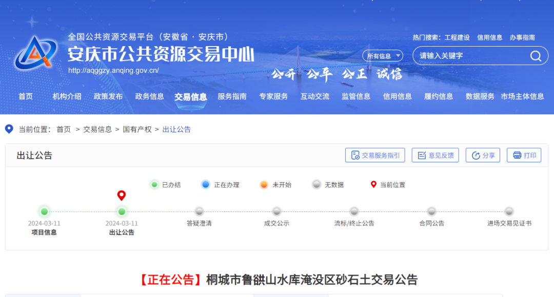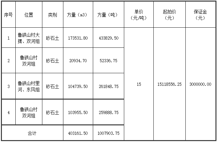 注:為滿足魯谼山水庫(kù)工程建設(shè)使用砂石土,買受人需與魯谼山水庫(kù)工程施工方提前溝通相關(guān)事宜。由于不可預(yù)見等因素影響,轉(zhuǎn)讓方不保證治理的砂石土實(shí)際方量和質(zhì)量,由此產(chǎn)生的問題與轉(zhuǎn)讓方和桐城市公共資源交易中心無關(guān)。