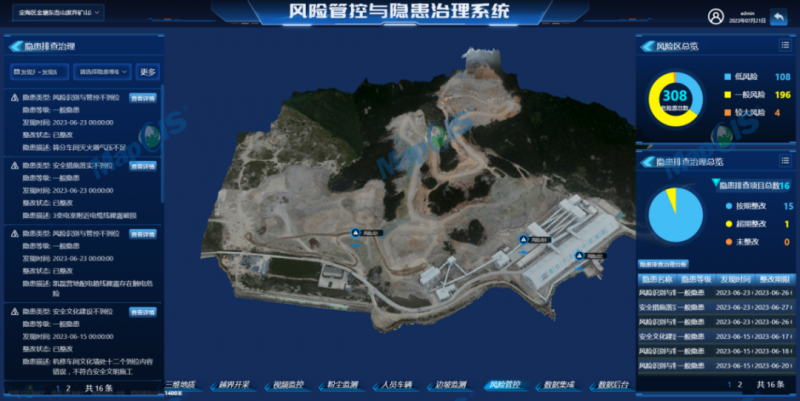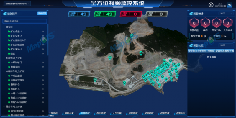 在數(shù)字化建設(shè)過程中,中地數(shù)碼積極探索,結(jié)合葛洲壩浙江礦業(yè)開發(fā)有限公司應(yīng)用需求,綜合運用遙感、地理信息、工作流引擎、物聯(lián)網(wǎng)大數(shù)據(jù)平臺等先進技術(shù),打造了礦山“142+2”體系即三維地質(zhì)模型、越界開采預(yù)警、全方位視頻監(jiān)控、粉塵實時監(jiān)測、人員車輛實時定位跟蹤、數(shù)據(jù)集成平臺和場景應(yīng)用平臺,以及邊坡安全在線監(jiān)測和風(fēng)險管控與隱患治理模塊,做到了礦山開采、運輸、加工、銷售等多環(huán)節(jié)的可視化、動態(tài)化、智慧化管理,在安全生產(chǎn)、規(guī)避風(fēng)險、防范隱患、降本增效等方面取得顯著成效。