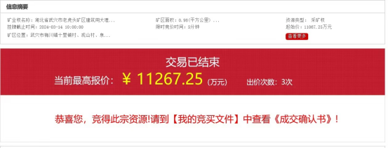 另外,該采礦權出讓前期地質勘查、編制相關方案、相關調查評估等工作經費共計367.02萬元,競得人需另行支付。
