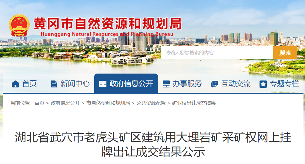 近日,湖北黃岡武穴市老虎頭礦區(qū)年產500萬噸建筑用大理巖礦被武穴城投十里礦業(yè)有限公司11267.25萬元成功競得。該礦資源儲量9836.38萬噸(近億噸),出讓年限16.3年。另外,該采礦權礦區(qū)范圍內原設置了3宗采礦權,現(xiàn)均已注銷。競得人還需支付原礦業(yè)權人補償及前期費用共5676.58萬元,經計算,該礦噸成本約1.72元。