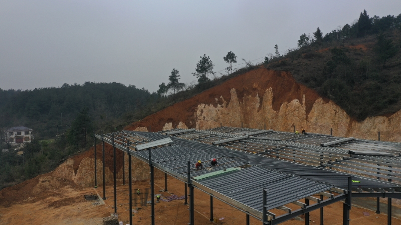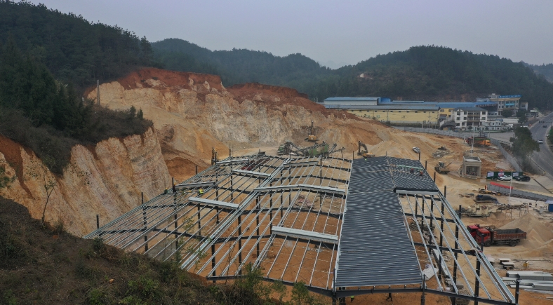 3月19日,位于玉屏經(jīng)開(kāi)區(qū)的固廢資源綜合利用建設(shè)項(xiàng)目現(xiàn)場(chǎng),工人們正在進(jìn)行成品倉(cāng)封頂安裝,項(xiàng)目于2月22日復(fù)工以來(lái),倒排工期,爭(zhēng)取下半年建成投產(chǎn)。