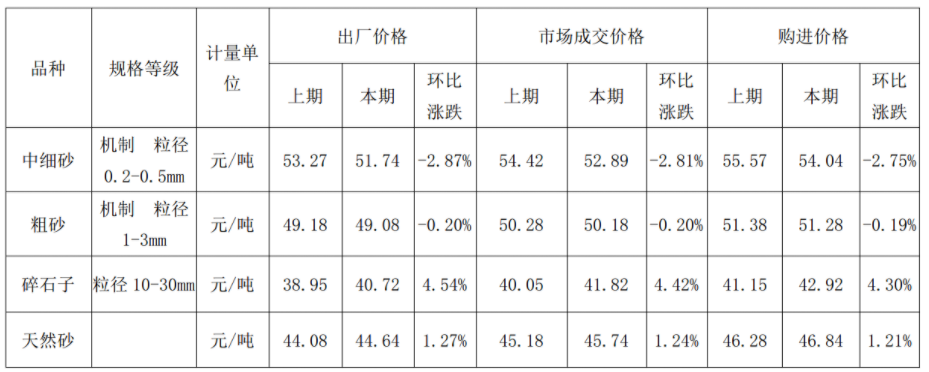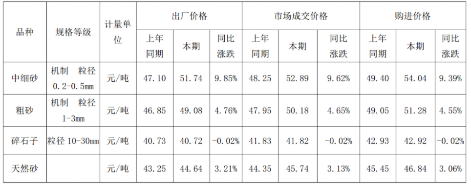 本期與上年同期砂石價(jià)格對(duì)比情況