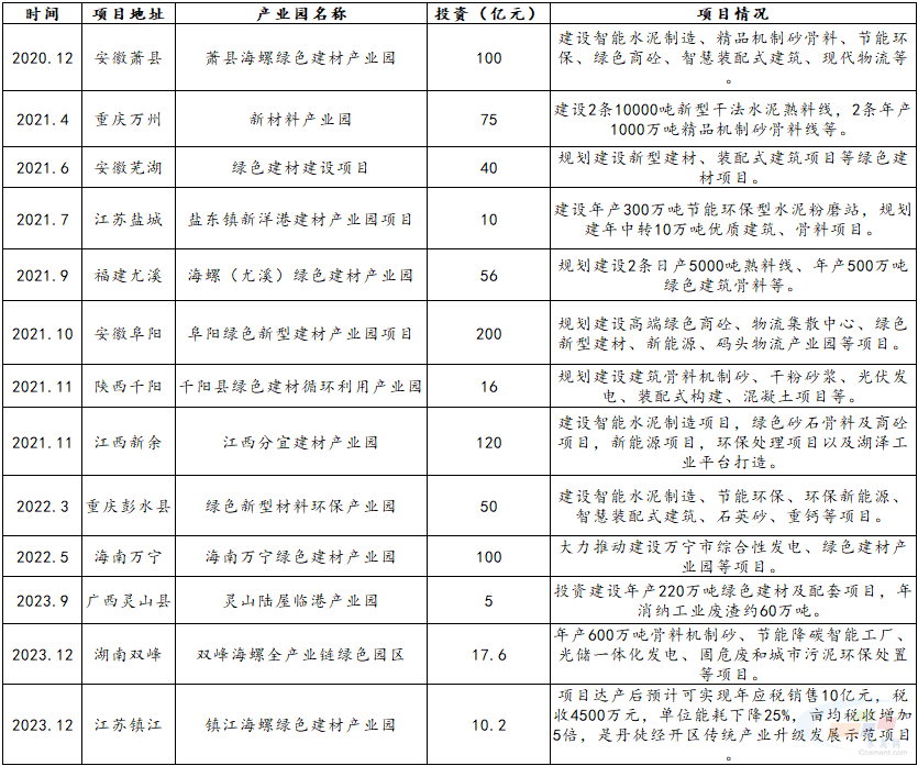 據(jù)了解,2021年以來,海螺加快布局和投資綠色建材產(chǎn)業(yè)園