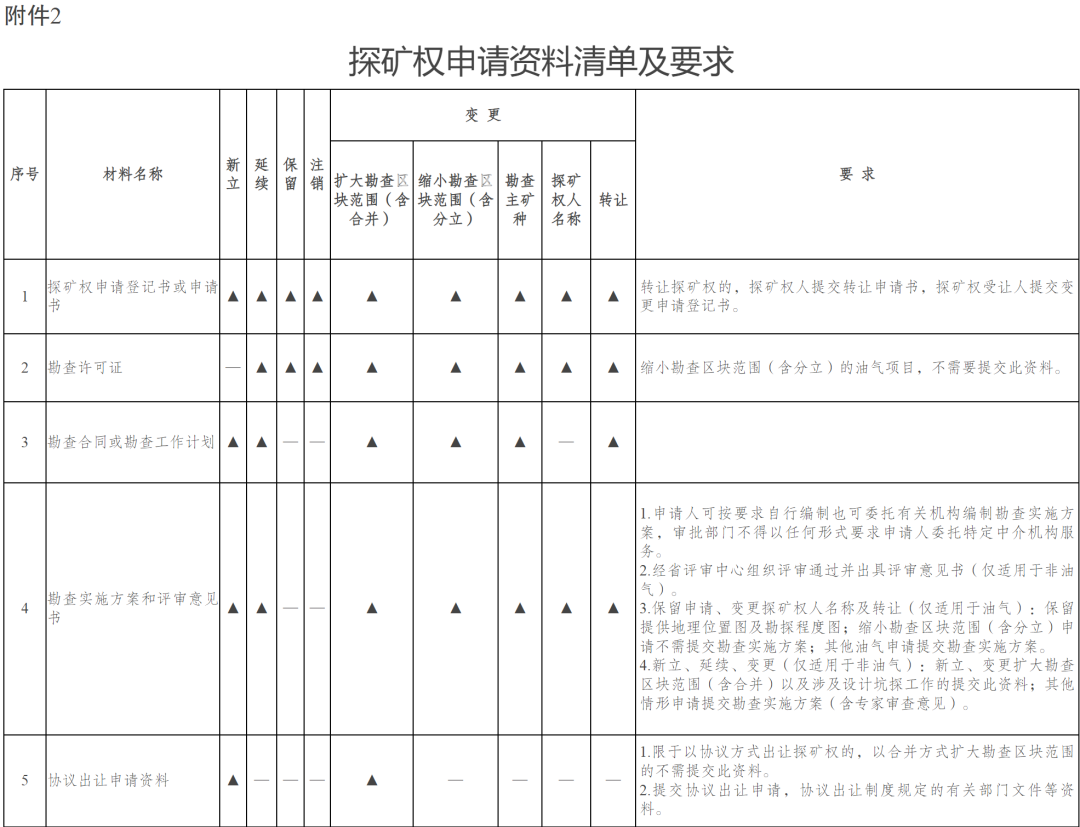 2.探礦權(quán)申請資料清單及要求