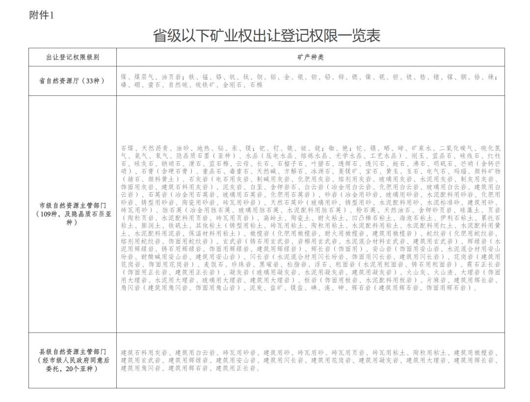 1.省級以下礦業(yè)權(quán)出讓登記權(quán)限一覽表