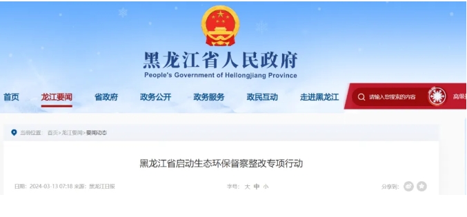 黑龍江省啟動生態(tài)環(huán)保督察整改專項行動
