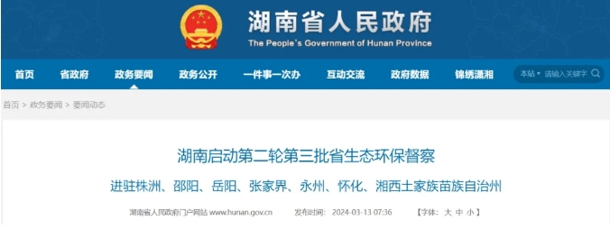 3月12日,湖南省正式啟動第二輪第三批省生態(tài)環(huán)境保護例行督察,7個省級督察組于3月13日、14日分別進駐株洲市、邵陽市、岳陽市、張家界市、永州市、懷化市、湘西土家族苗族自治州。第三批省生態(tài)環(huán)境保護例行督察進駐時間持續(xù)20天,督察重點聚焦11項內(nèi)容。